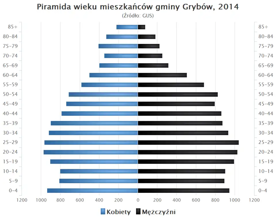 - Piramida wieku mieszkańców gminy Grybów w 2014 roku[1]