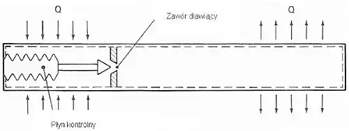 Grzejnik dyfuzyjny może być wyposażony w wewnętrzny zawór dławiący dzięki czemu może regulować i ograniczać przepływ energii cieplnej, aby temperatura rdzeni bez względu na temperaturę przepływającej przez kolektor cieczy nigdy nie przekroczyła żądanej wartości. Powstanie wtedy wymiennik cieplny typu woda – gaz z ograniczeniem temperaturowym na części gazowej (radiatora).