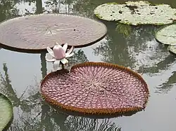 - Część liści zanurzona, część ma blaszki pływające po powierzchni wody, czasem też wynurzone. Liście pływające mają blaszki duże, okrągłe, tarczowate lub sercowate[5]. U wiktorii królewskiej liście osiągają ok. 2 m średnicy i usztywnione rurkowatymi wiązkami przewodzącymi mogą utrzymać na powierzchni wody ciężar do 75 kg[4]. Liście zanurzone grążeli mają wygląd przypominający liście sałaty[3].