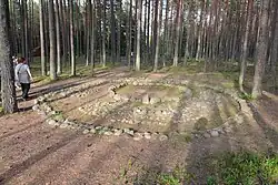 - krąg kamienny nr 2 – średnica 36 m, zachowało się 16 głazów rozstawionych co 3,5 m, każdy otoczony małymi kamieniami, dodatkowo małe kamienie rozstawione są także pomiędzy dużymi po narysie kręgu. Na środku kręgu znajduje się kopiec o średnicy ok. 5 m przykryty kamieniami z grobem ciałopalnym, jamowym. W pobliżu zlokalizowano 4 stele kamienne i stos ciałopalny[1].