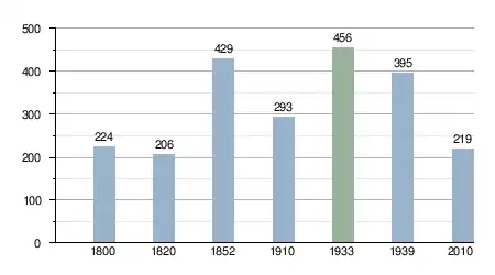 Ludność w ostatnich 3 stuleciach (wieś i majątek)[30][31][32][33]: