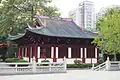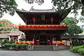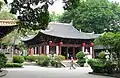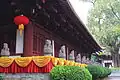 Główny budynek, czyli Pawilon Wielkiego Zwycięzcy (skt Mahavira), co odnoszono zawsze do Siakjamuniego, leży na północ od bram na przedzie dużego dziedzińca, na zachodzie którego znajduje się Wieża Bębna, a na wschodzie - Wieża Dzwonu. Jedną z jego charakterystycznych cech jest podniesiona weranda. Znajdują się tam także dwie stupy oraz dużych rozmiarów kadzielnica. Pawilon ten ma 35.36 metra długości, 24.8 metra szerokości (głębokości) i 13.6 metra wysokości[4]. Dach ma konstrukcję dwuokapową, a ściana pomiędzy oboma dachami jest otwarta, co pozwala na swobodną cyrkulację powietrza i penetrację wnętrza przez promienie słońca. Wewnątrz znajdują się trzy potężne złocone posągi triady buddyjskiej: pośrodku umieszczona jest 30-stopowa postać Buddy Siakjamuniego, oskrzydlonego przez 25-stopowe figury Mańdziuśriego i Samantabhadry. Towarzyszą im figury dwu uczniów Buddy wysokie na 15 stóp - są to Mahakaśjapa i Ānanda. W tylnej części budynku znajduje się posąg bodhisattwy Guanyin. Pawilon Mahaviry uchodzi za najwspanialszy w całych południowych Chinach i był często kopiowany w całości lub fragmentach w innych klasztorach południowych Chin.