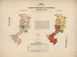 Narodowość oraz wyznanie mieszkańców guberni augustowskiej jest ukazana na mapie będącej w zasobach Archiwum Głównym Akt Dawnych w Warszawie[10].
