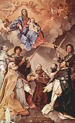 Po ustąpieniu zarazy w 1630, senat Bolonii zamówił u Reniego obraz wotywny przedstawiający Madonnę z Dzieciątkiem i świętymi. Niektórzy mieszkańcy miasta krytykowali obraz, zauważając, iż artysta zbliżył się w nim ponownie do swojego drugiego stylu, w którym rozjaśniał kolory, srebrząc je, jak można zaobserwować w obrazie Zwiastowanie dla kościoła w Ascoli Piceno.