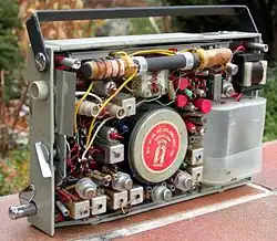 Antena teleskopowa (na pierwszym zdjęciu rozłożona), po złożeniu była trochę dłuższa od wysokości radia. Z tego powodu była odkręcana i chowana do kanału, biegnącego dołem wzdłuż odbiornika (widoczna na drugim zdjęciu). Dwie baterie zasilające odbiornik umieszczało się w ochronnym pojemniku z tworzywa sztucznego, aby wysączający się z nich niejednokrotnie elektrolit nie niszczył elementów i połączeń.