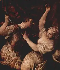 Gwałt na Lukrecji inspirowany był historią zawartą w jednym z poematów Owidiusza, a także z Historii Rzymu Tytusa Liwiusza. W 506 roku p.n.e. Sekstus Tarkwiniusz, syn Tarkwiniusza Pysznego, króla Rzymu, zgwałcił Lukrecję, żonę Collatinusa. W konsekwencji, Lukrecja popełniła samobójstwo. Lucjusz Juniusz Brutus pokazał jej ciało na Forum Romanum. Zaowocowało to rewoltą przeciwko Tarkwiniuszom, wygnaniem rodziny królewskiej i utworzeniem republiki.