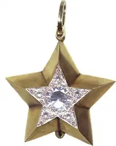 Insygnium odznaki (Wielka Gwiazda) to wykonana ze szczerego złota gwiazda pięciopromienna o średnicy 44,5 mm, w której środku umieszczona jest na awersie jeszcze jedna gwiazda tego samego modelu, wykonana w platynie, z brylantem 3,06-karatowym w środku, pokryta 25 brylantami, razem 1,25 karatów. Między wszystkimi promieniami gwiazdy umieszczone były większe brylanty, o wielkości 3,06 karatów. Rewers gwiazdy był gładki.