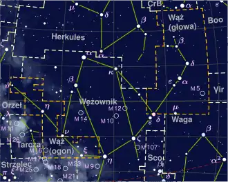 - ↑ Przemysław Mieszko Rudź: Atlas gwiazd. Przewodnik po konstelacjach.. Warszawa: Wydawnictwo SBM Sp. z o.o., 2015, s. 105. ISBN 978-83-7845-873-9.