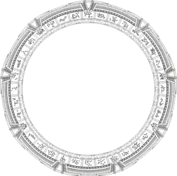 - ↑ Jest to charakterystyczny dla ziemskich gwiezdnych wrót symbol. Urządzenia w innych lokalizacjach miały inny unikatowy symbol.