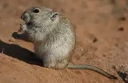 Parotomys brantsii | (A. Smith, 1834) | gwizdkor hotentocki | gatunek monotypowy | południowa i południowo-wschodnia Namibia, skrajnie południowo-zachodnia Botswana oraz zachodnia Południowa Afryka (Prowincja Przylądkowa Północna i Zachodnia); zakres wysokości: 0–1000 m n.p.m. | DC: 14,1–15,8 cm DO: 9,3–11,5 cm MC: 75–111 g |
