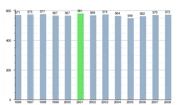 Zmiany liczby ludności w miejscowości Gyňov od 1996 roku[8].