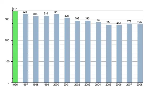Według danych z dnia 31 grudnia 2012, wieś zamieszkiwały 293 osoby, w tym 145 kobiet i 148 mężczyzn[7].