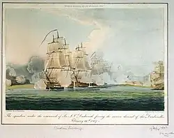W grudniu 1805 roku okręty dowodzone przez Johna Duckwortha rozpoczęły pościg za francuską eskadrą zauważoną w pobliżu Madery i zmierzającą na Karaiby. Dogoniły ją 6 lutego 1806 roku w okolicy wyspy San Domingo. W efekcie stoczonej bitwy zatopione zostały dwa francuskie okręty liniowe, a trzy kolejne zmuszono do poddania się. Na "Canopus" zginęło ośmiu marynarzy, 22 zostało rannych.