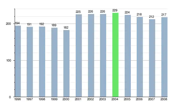 Zmiany liczby ludności w miejscowości Hačava od 1996 roku.