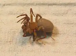 - ↑ M.J. Roberts: Spiders of Britain & Northern Europe. London: HarperCollins, 1995, s. 250-251, seria: Collins Field Guide.