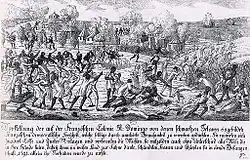 W 1791 roku wybuchło niewolnicze powstanie (rewolucja haitańska) pod wodzą kapłana voodoo. Przywódców niewolników, w tym Toussainta Louverture’a, wspierali Hiszpanie. W 1793 roku zniesiono niewolnictwo. W 1794 roku Toussaint ze swoimi powstańcami przeszedł na stronę Francji, a po okresie walk wewnętrznych i zwycięstwie nad interwencyjnymi armiami hiszpańskimi (1796) i brytyjskimi (1798), proklamował w 1801 roku konstytucję Saint-Domingue. Część wyspy stała się autonomicznym państwem sprzymierzonym z Francją. Niepodległościowe starania rządu autonomii sprowokowały zbrojną interwencję francuską (z wykorzystaniem Legionów Polskich). Toussainta rządzącego jako gubernatora obalono, a Francuzi zaczęli przywracać dawne porządki. W 1802 roku wybuchło kolejne powstanie, które przerodziło się w wojnę o niepodległość. Na czele rebeliantów stanął Jean-Jacques Dessalines, który zyskał przychylność zarówno ludności murzyńskiej jak i Mulatów. Dowodzona przez niego armia pokonała wojska francuskie[6].