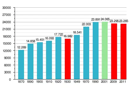 | Populacja (I 2011) • liczba ludności • gęstość |