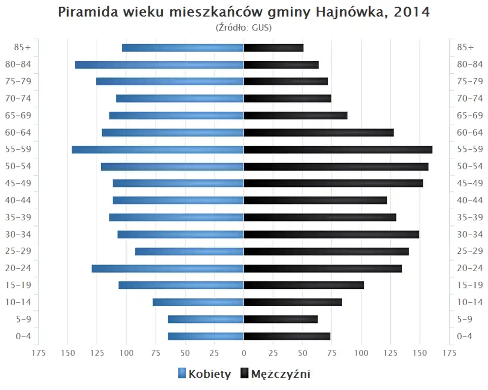 - Piramida wieku mieszkańców gminy Hajnówka w 2014 roku[1].