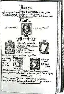- ↑ Postage-stamp paper & water-marks. „The Stamp Collector's Magazine”. IV, s. 49, 1866. (ang.).