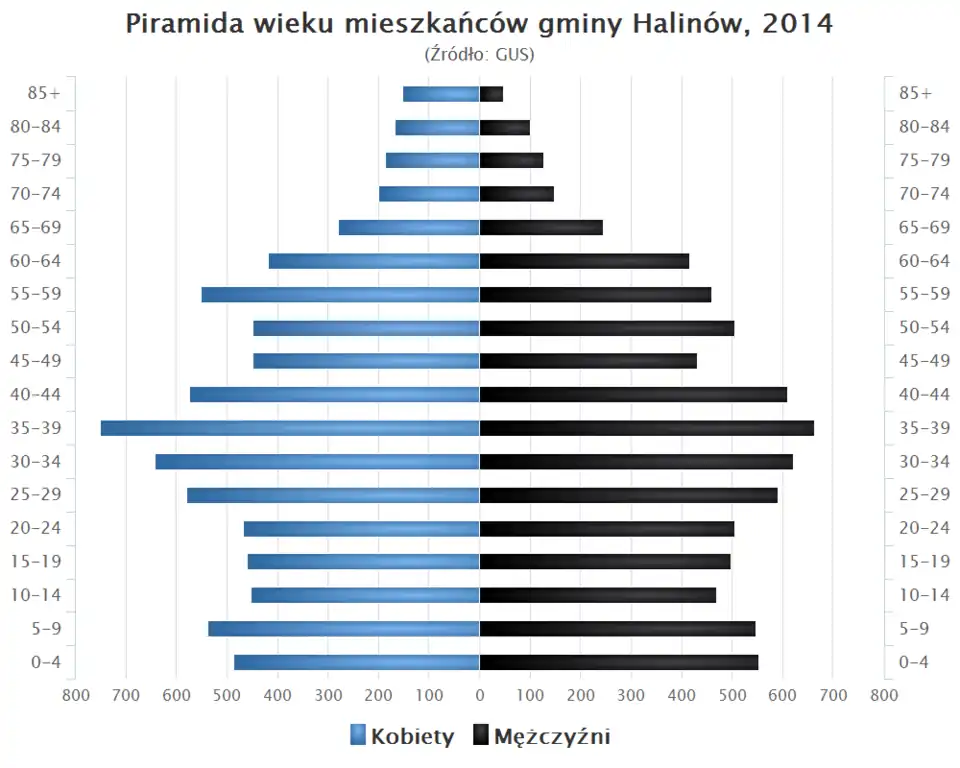 - Piramida wieku mieszkańców gminy Halinów w 2014 roku[6].