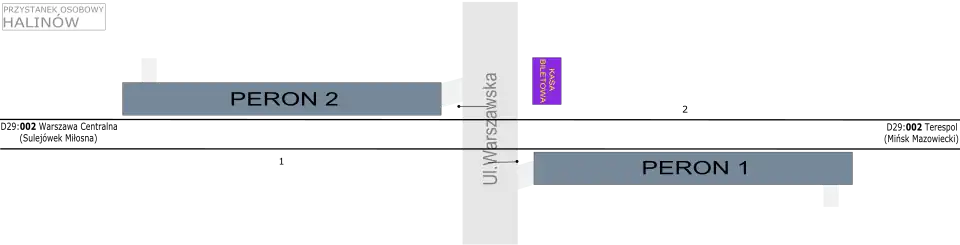 - Peron 1: Obsługuje połączenia w kierunku Mińska Mazowieckiego i Siedlec.
