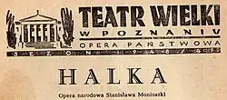 - ↑ Trzy przedstawienia (21 marca, 2 i 3 kwietnia 1960) „własnymi siłami” z udziałem solistów z opery w Liège (Belgia), gdzie poprzednio dzieło to zostało wykonane. Długi artykuł ukazał się w dzienniku La Voix du Nord (25 marca 1960), a sprawozdanie w Ruchu Muzycznym nr 10/11 (1–15 czerwca 1960: H. Musielak, „Sukces Halki w Lille”).