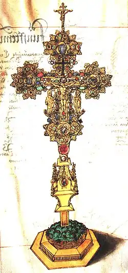 Do najcenniejszych z zachowanych dzieł należą przechowywany w Statens Historiska Museum w Sztokholmie krzyż relikwiarzowy daru Kazimierza Hohenzollerna wnuka Kazimierza Jagiellończyka, margrabiego Brandenburgii. Krzyż ten wykonany został na początku XVI wieku, mieszczący wewnątrz partykułę Drzewa Pańskiego. Krzyż ten zdobią liczne kamienie szlachetne oraz odlewane wizerunki - Chrystusa na krzyżu oraz Marii i św. Jana Ewangelisty. Figury te oraz Chrystus ukrzyżowany są dziełami wtórnie wykorzystanymi, pochodzą z XIV stulecia. Asystujących Ukrzyżowanemu usytuowano na ramionach flankujących trzon krzyża. W pobliskiej Uppsali w skarbcu tamtejszej katedry znajduje się kolejny relikwiarz Krzyża Św. wykonany na przełomie XV i XVI w. Również w tym samym skarbcu znajduje się późnogotycki złoty kielich, dzieło Hansa Huiuffa którego dekorację wzbogacają liczne kamienie szlachetne.