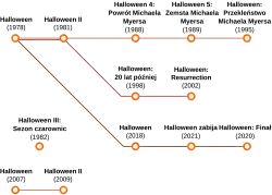 - Halloween (Halloween, 2018, reż. David Gordon Green). Kontynuacja oryginalnego filmu z 1978 ignorująca wszystkie pozostałe sequele nakręcone po 1978 roku. Jest to pierwszy film Halloween od 1982 współtworzony przez Johna Carpentera – twórcę oryginalnego filmu pod tym samym tytułem. Carpenter został producentem filmu, w którym do swojej roli powróciła Jamie Lee Curtis. Pierwsza część trylogii sequeli Davida Gordona Greena.