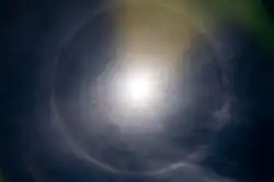 Halo (gr. hálos, „tarcza słoneczna”) – zjawisko optyczne zachodzące w atmosferze ziemskiej obserwowane wokół tarczy słonecznej lub księżycowej, jest fotometeorem. Jest to świetlisty, biały lub zawierający kolory tęczy (wewnątrz czerwony, fioletowy na zewnątrz), pierścień widoczny wokół słońca lub księżyca. Zjawisko wywołane jest załamaniem światła na kryształach lodu i odbiciem wewnątrz kryształów lodu znajdujących się w chmurach pierzastych piętra wysokiego (cirrostratus) lub we mgle lodowej. Różne rodzaje kryształów lodowych, możliwych ustawień w powietrzu i dróg optycznych w kryształach sprawia, że występuje wiele efektów halo.