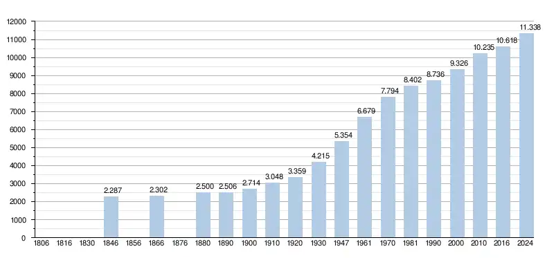 - Źródła:NIS, :od 1806 do 1981= według spisu; od 1990 liczba ludności w dniu 1 stycznia