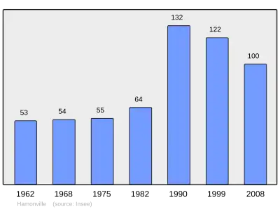 Według danych na rok 1990 gminę zamieszkiwały 132 osoby, a gęstość zaludnienia wynosiła 20 osób/km² (wśród 2335 gmin Lotaryngii Hamonville plasuje się na 913. miejscu pod względem liczby ludności, natomiast pod względem powierzchni na miejscu 868.).