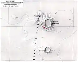 Krater ma szerokość 6 km i leży na szczycie starszego od niej wulkanu Whitney, a na jego krawędzi jest kilka stożków lodowych, podobnych do tych, jakie są na prawdziwych wulkanach. Prawdopodobnie wulkan był aktywny jeszcze 11 mln lat temu. Na południe od niego jest mniejszy od niego stożek, cały pokryty lądolodem, Mount Cumming[3]. Jest 128. pod względem wysokości górą na Antarktydzie[4].