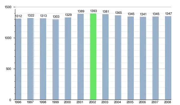 Według danych z dnia 31 grudnia 2012, wieś zamieszkiwało 1438 osób, w tym 747 kobiet i 691 mężczyzn[7].