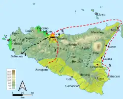 Niedługo później Syrakuzanie pod wodzą Hermokratesa zaatakowali punicką część wyspy, co spotkało się ze zdecydowaną odpowiedzią Kartaginy. Hannibal, wówczas już w starszym wieku, ponownie wyruszył zbrojnie na Sycylię wraz z krewnym Himilkonem synem Hannona, również z rodu Magonidów[4]. Kartagińczycy zaproponowali sojusz miastu Akragas, które jednak opowiedziało się po stronie Syrakuz – wówczas Kartagińczycy oblegli to miasto. Król zmarł podczas oblężenia z powodu choroby[5]. Dowództwo nad punicką armią przejął Himilkon, który kontynuował walki z Syrakuzami.