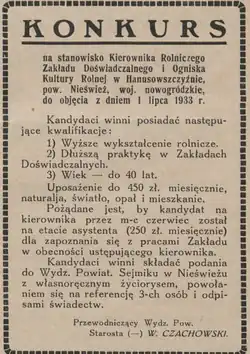 - ↑ Przynależność powiatowa zmieniała się. Miejscowość leżała w powiatach słuckim (do 1919), baranowickim (1919–1920) i nieświeskim (1920–1945).