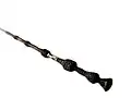 Czarna Różdżka (ang. Elder Wand) | najstarszemu bratu Antiochowi Peverell | Najpotężniejsza z różdżek | Różdżka ta pojawia się w historii pod wieloma nazwami m.in. jako Berło Śmierci, czy Różdżka Przeznaczenia. Wykonana z czarnego bzu o rdzeniu z włosa testrala jej długość wynosiła 15 cali[1]. Aby ją zdobyć, co było marzeniem czarnoksiężników, należało pokonać jej poprzedniego właściciela. W jej posiadanie wszedł Gregorowicz, wytwórca różdżek. Ukradł ją Grindelwald, a następnie przegrał ją w 1945 roku w pojedynku z Dumbledorem. W ostatniej książce sagi zdobył ją Voldemort, wyjmując przedmiot z grobowca Albusa Dumbledore’a. Różdżka jednak nie była mu w pełni posłuszna i doszedł do wniosku, że jej prawowitym właścicielem jest Severus Snape, zabójca Dumbledore’a. W trakcie drugiej bitwy o Hogwart, Czarny Pan zamordował go. To również nic nie dało – prawowitym właścicielem różdżki był Draco Malfoy, który rozbroił dyrektora Hogwartu, zanim ten zginął z rąk Snape’a. Nieświadomy tego Harry pokonał Malfoya kilka miesięcy przed przybyciem do Hogwartu po ostatniego horkruksa. Zrozumiał to dopiero później, gdy zbliżał się czas pokonania Voldemorta. | Ostatnimi czynami Czarnej Różdżki było pokonanie Voldemorta oraz naprawienie przełamanej różdżki Harry’ego Pottera. Następnie Harry Potter ponownie włożył różdżkę do grobowca Albusa Dumbledore’a, by utraciła swoją moc wraz ze spokojną śmiercią bohatera. |