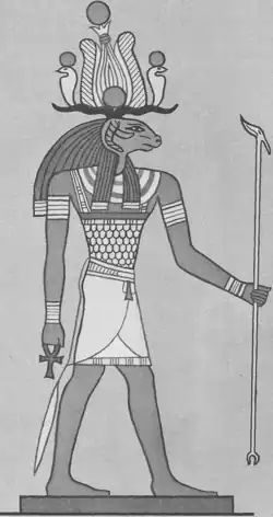 - 1 2 Manfred Lurker: Bogowie i symbole starożytnych Egipcjan. Warszawa: Wydawnictwo Czytelnik, 1995, ISBN 83-07-02470-6, s. 88.