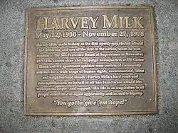 - ↑ Pierwszy dzień emisji znaczka z Harveyem Milkiem w USA. www.whitehouse.gov, 2014-05-21. [dostęp 2014-05-23]. (ang.).