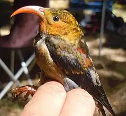 - ↑ D. Pratt: Family Drepanididae (Hawaiian Honeycreepers). W: Josep del Hoyo, Andrew Elliott, David A. Christie: Handbook of the Birds of the World. Cz. 15: Weavers to New World Warblers. Barcelona: Lynx Edicions, 2010, s. 658. ISBN 978-84-96553-68-2. (ang.).