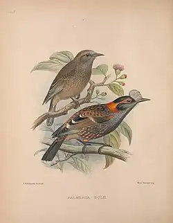 - ↑ Akohekohe (Palmeria dolei). IBC: The Internet Bird Collection. [zarchiwizowane z tego adresu (2016-03-04)]. (ang.).