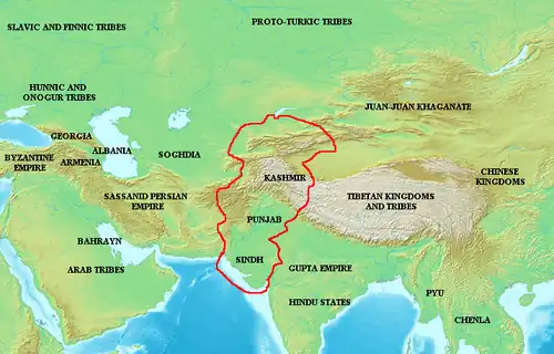 Ok. IV/V w. zajęli międzyrzecze Syr-Darii i Amu-Darii oraz północny i środkowy Afganistan aż po Kabul, skąd od lat 50. V wieku organizowali liczne wyprawy wojenne przeciwko Persji i Indiom. We wschodnim Iranie wzięli do niewoli króla Peroza, który za cenę wolności musiał odstąpić zwycięzcom Herat, Merw i Balch a ponadto zapłacić ogromną kontrybucję. W Indiach ich najazdy początkowo były skutecznie odpierane przez cesarzy Kumaraguptę I i Skandaguptę, jednak już w latach 490–500, heftalicki władca Toramana, wykorzystując załamanie państwa Guptów, zdołał opanować ich kraj (prawdopodobnie aż po Narbadę i współczesny Allahabad).