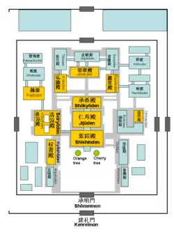 ![]() Model starożytnego Heian-kyō; pałac cesarski w centrum | |