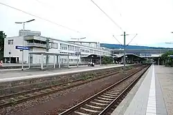 Heidelberg jest ważnym węzłem kolejowym oraz przystankiem dla pociągów ekspresowych[2]. Dawniej, w czasie istnienia, w Heidelbergu zatrzymywały się również pociągi Trans-Europ-Express (TEE) oraz FernExpress (FD)[2]. W Heidelbergu jest kilka stacji kolejowych. Heidelberg-Altstadt (dawniej Karlstor) przy starym mieście oraz Heidelberg-Weststadt/Südstadt przyjmują pociągi z kierunku Sinsheim i Mosbach. Na stacji Heidelberg-Pfaffengrund/Wieblingen zatrzymują się pociągi jadące z Mannheim, z kolei na stacji Heidelberg-Kirchheim/Rohrbach można wsiąść do pociągu jadącego w kierunku Bruchsal, a dalej do Karlsruhe. W centrum, przy Willy-Brand-Platz znajduje się główny dworzec miasta: Heidelberg Hauptbahnhof[2].