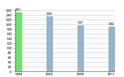 Liczba mieszkańców w latach (dane ze spisu powszechnego w 1988 według stanu jednostek terytorialnych z 1 stycznia 1998)