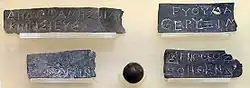 - Guy Rachet, Słownik cywilizacji greckiej, Ewdoksia Papuci-Władyka (tłum.), Katowice: Wydawnictwo „Książnica”, 2006, s. 158, ISBN 83-7132-919-9, ISBN 978-83-7132-919-7, OCLC 749560502.
