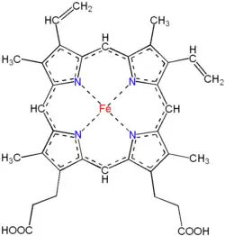 Hem, żelazoporfiryna – grupa prostetyczna wielu enzymów, występująca między innymi w hemoglobinie, mioglobinie oraz cytochromach[1].