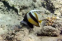 - ↑ Heniochus intermedius, [w:] The IUCN Red List of Threatened Species (ang.).