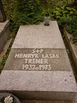Uważany za najwybitniejszego polskiego trenera w historii, zginął tragicznie w wypadku samochodowym 5 stycznia 1973 w Skomielnej Białej w województwie małopolskim. Po jego śmierci jego zawodnicy sięgnęli w 1973 po mistrzostwo świata zarówno w wyścigu indywidualnym (Ryszard Szurkowski przed drugim Stanisławem Szozdą), jak i drużynowym na 100 km. Jego pamięci poświęcony jest Memoriał im. Henryka Łasaka. Pochowany na cmentarzu Powązki Wojskowe w Warszawie (kwatera A15-8-19)[2].