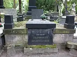 - ↑ Cmentarz Stare Powązki: FILIPOWSCY I KOŁODZIEJSCY, [w:] Warszawskie Zabytkowe Pomniki Nagrobne [dostęp 2019-11-30].