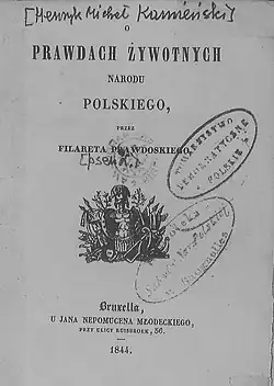 - O prawdach żywotnych narodu polskiego, Bruksela 1844.